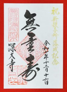 なお落成式当日限り、先着50名様に「新授与所落成記念ご朱印(無量寿)」を授与いたします。一体500円。